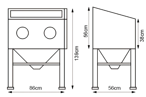 • Golvmodell för blästring med glaskulor, plastkulor, aluminiumoxid mm